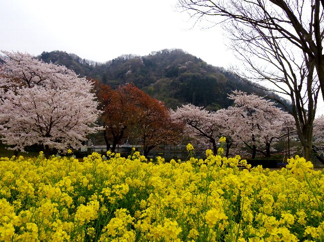 桜が満開になる時期、ここ津久井湖では「菜の花」も
