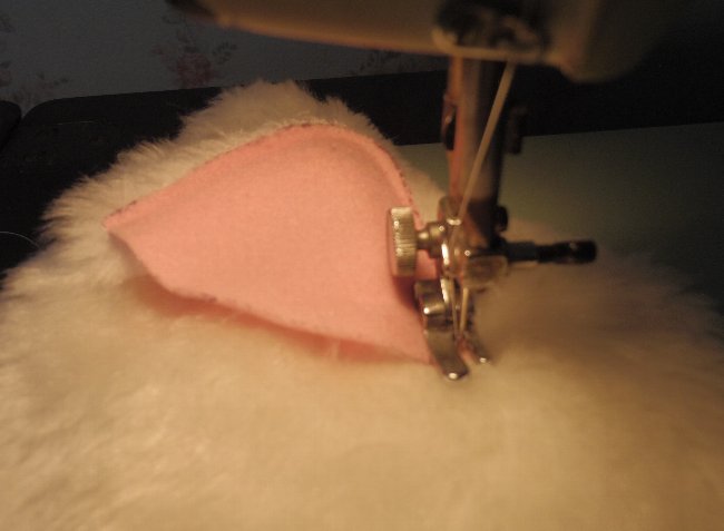 耳の前側が出来たら、つづいては裏側になるもふもふと