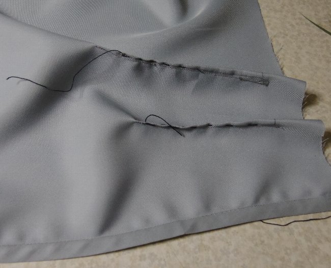 つづいては、「ダーツ」になる部分を、こんな感じで仮縫い