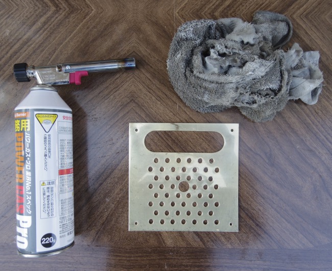 加工したパーツを「バーナー」で炙り、間髪入れずに 濡らしたウエスを当てると、引き締まるという寸法。